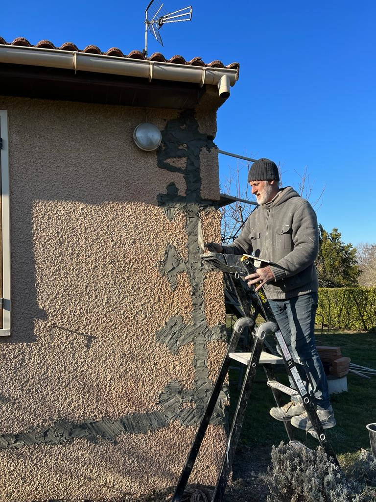 Chantier réalisé en mai 2023. Nous laissons ensuite 4 saisons en l’état, puis nous referons les façades.